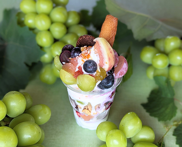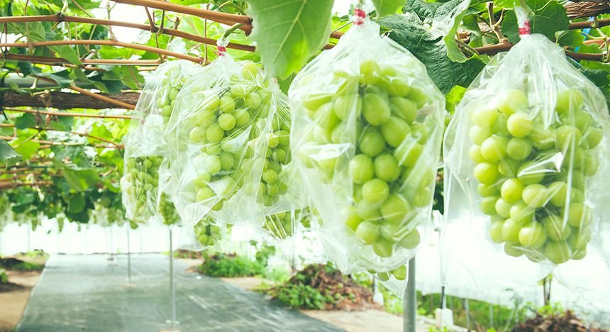 とても甘く爽やかな香りで、人気の高級品種です。種無しで皮ごと食べられます。